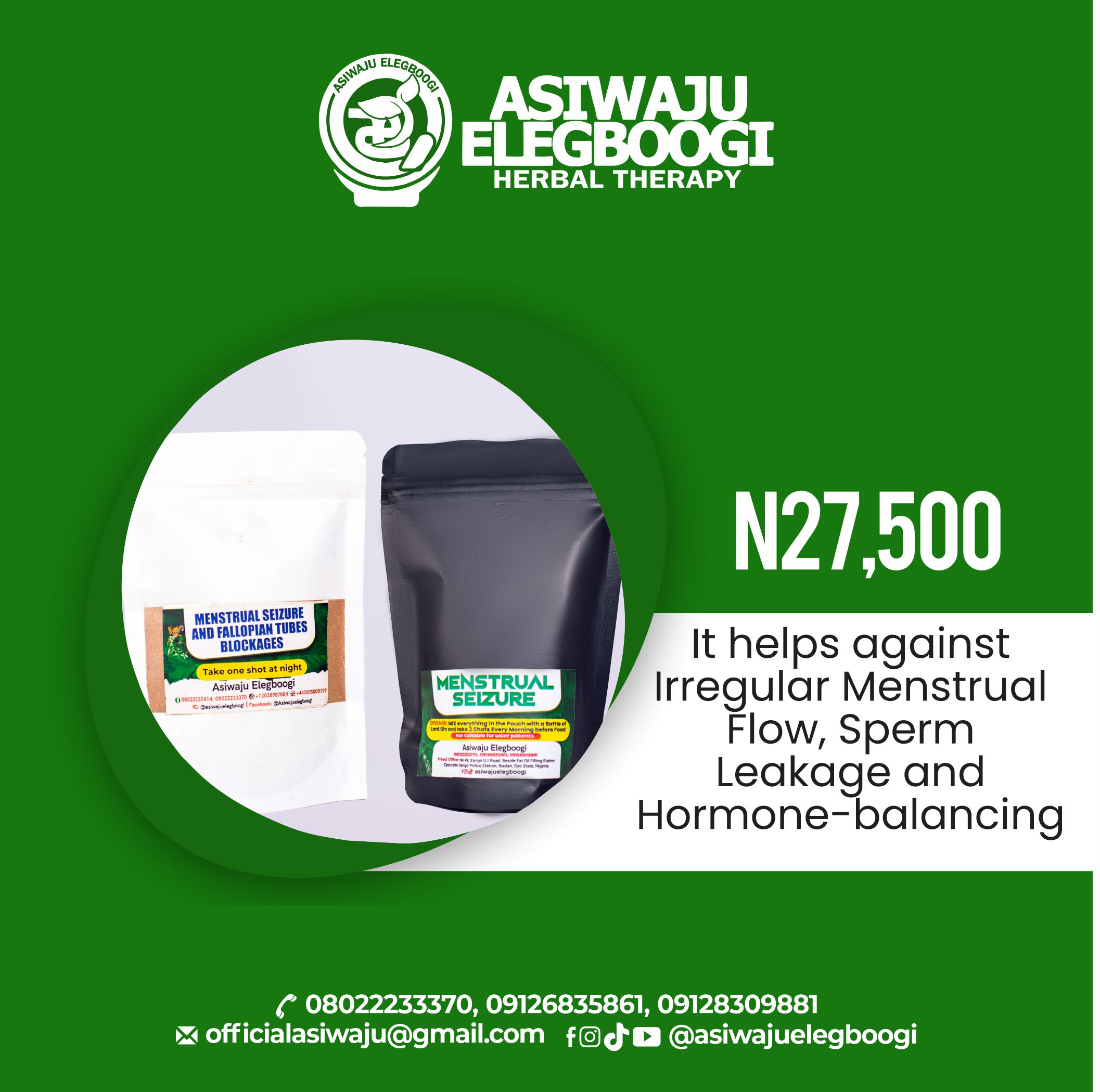 Buy Balance Your Hormones: Menstrual Seizure Combo on Asiwaju Elegboogi Herbal Therapy